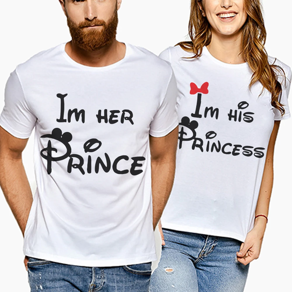 Women Men Cotton T Shirt Summer Funny Couple Clothing Im Her Prince Letter Print Korean Lover Tee New Love Couple T Shirts Aliexpress